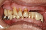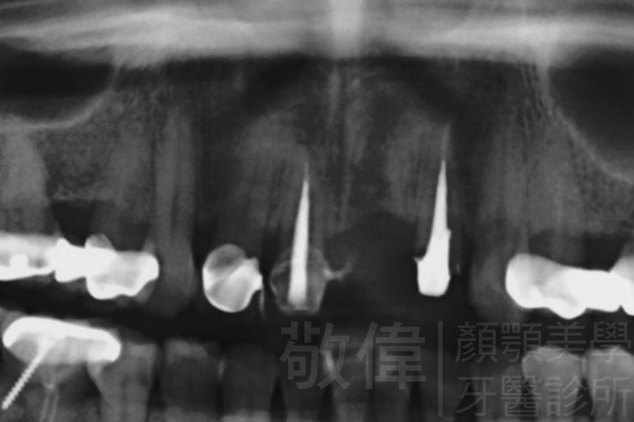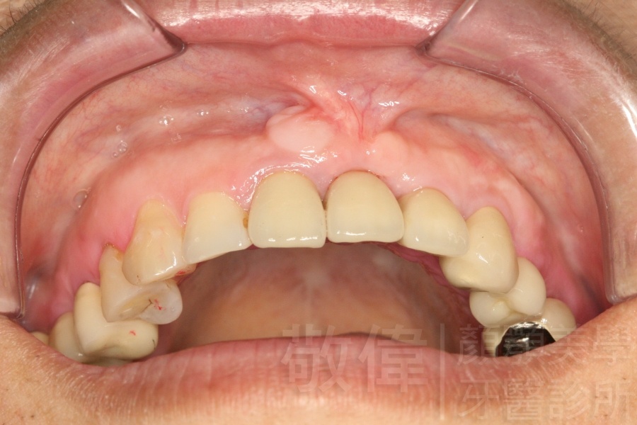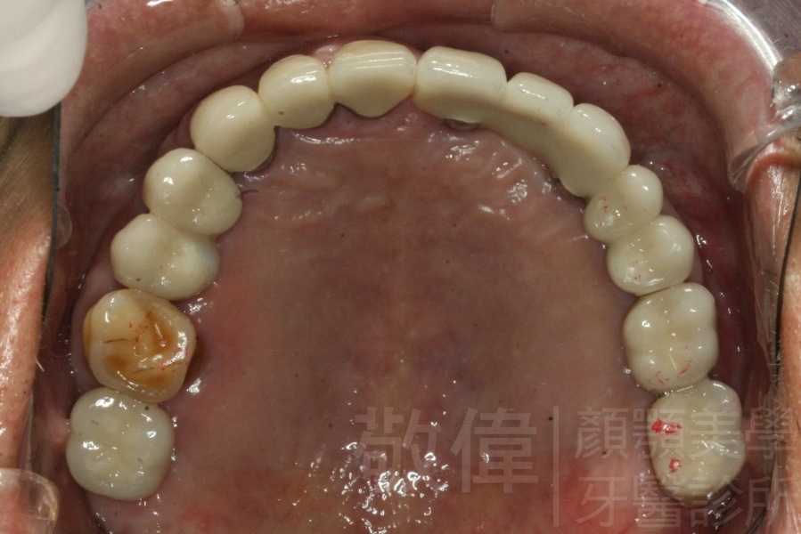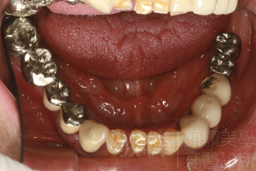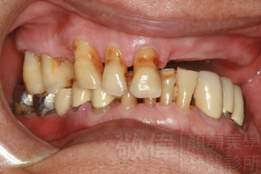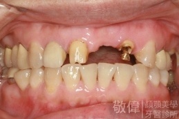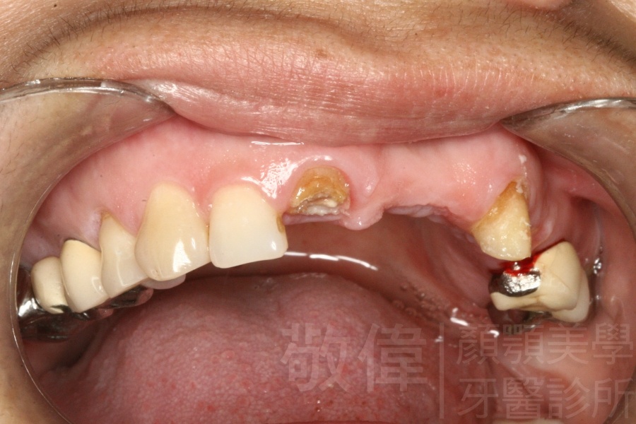 原來的牙冠底下當支撐的真牙已經爛掉了,造成整排假牙掉下來
