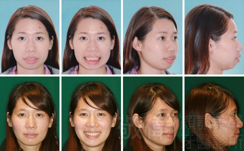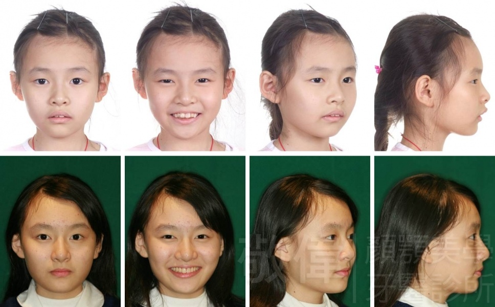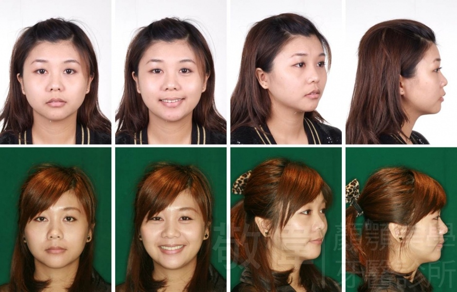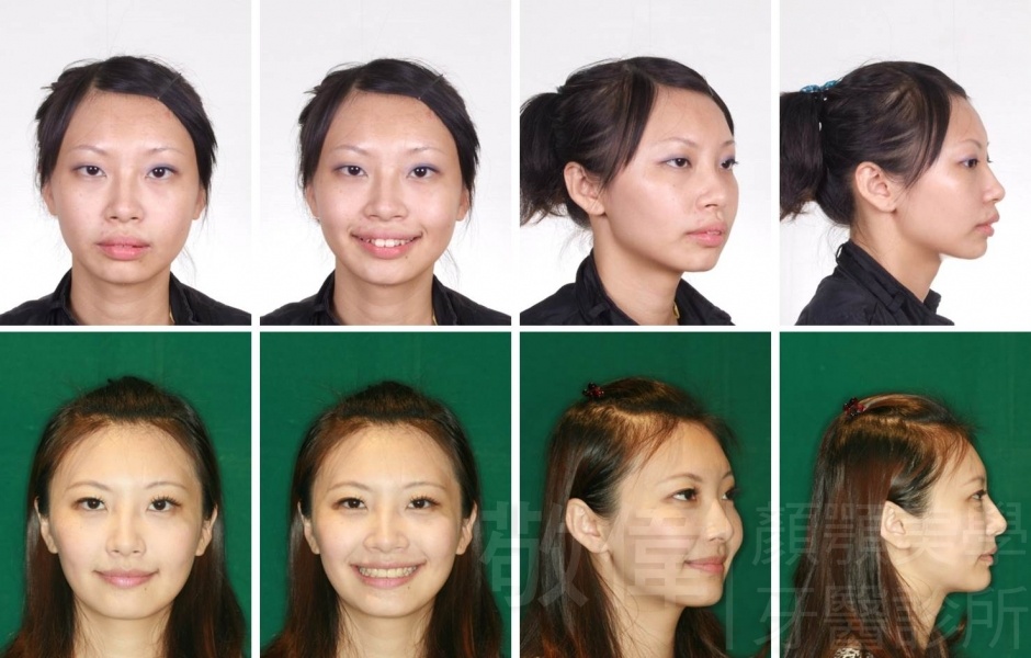 原來可就已經長得不錯的女孩經由本院的矯正技術,綜合各家之所長,再配合本院開發獨特的3D顏面設計分析的技術,設計出良好的臉型,可以把原來上顎微翹的嘴唇,配合本院3D齒顎顏雕塑秘技,達到患者更完美的臉型。